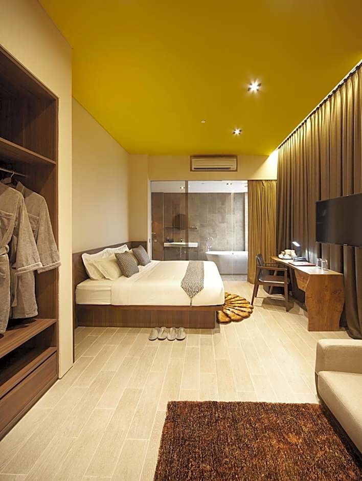 This spacious suite comes equipped with a king-sized bed, seating area with sofa and complimentary WiFi access. There is also a working desk and ironing facilities. The private private bathroom offers a bathtub and bathrobes.